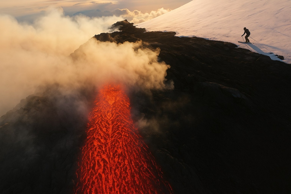На лыжах в 30 метрах от лавы Когда большинство людей думает о катании на лыжах, они представляют себе снежные склоны, морозный воздух и горячий шоколад в шале. Но Джош Тернер и Давиде Томаселло решили: а почему бы не добавить немного… огонька?… 🔗 Подробности тут #Лыжи #Эпицентр #за_гранью #лыжи Telegram: @XtremeToday Сайт: xtremetoday.ru