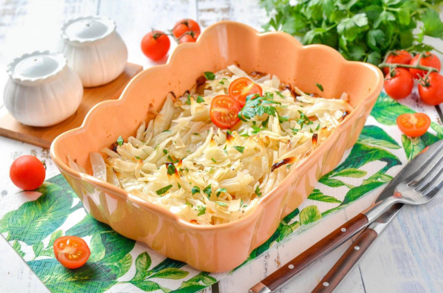 Нежная, сочная, аппетитная и без лишних хлопот! Тушеная капуста в духовке почти не отличается по вкусу от той, которая готовится на плите. Только вот тушится она без вашего участия — поставил в духовку и забыл! Я сомневалась, что капуста получится мягкой, а зря — все отлично протушилось! Состав: Пошаговое приготовление Шаг 1: Как потушить капусту в духовке? Подготовьте продукты. Капусту возьмите белокочанную, выбирайте осенние сорта — они сочнее и вкуснее в тушеном виде. Масло берите рафинированное, без запаха. Кроме перца можете взять любые подходящие для тушеных овощей специи (тимьян, орегано, прованские или итальянские травы). Шаг 2: Сразу включите разогреваться духовку на 180°С. Кочан обмойте, оборвите испорченные, вялые и грязные листья. Отрежьте от кочана большой кусок. Нарежьте его любым способом — я нарезала крупной соломкой, можете резать тоньше или на квадратики. Шаг 3: Возьмите подходящую форму для запекания. Выложите в нее нарезанную капусту. Она довольно объемная, чтобы у