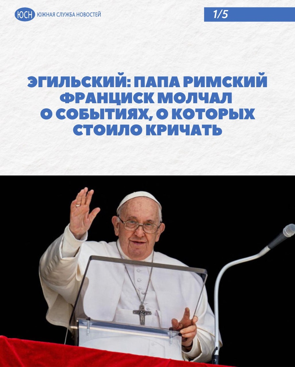 🔹 Эгильский: Папа Римский Франциск молчал о событиях, о которых стоило кричать