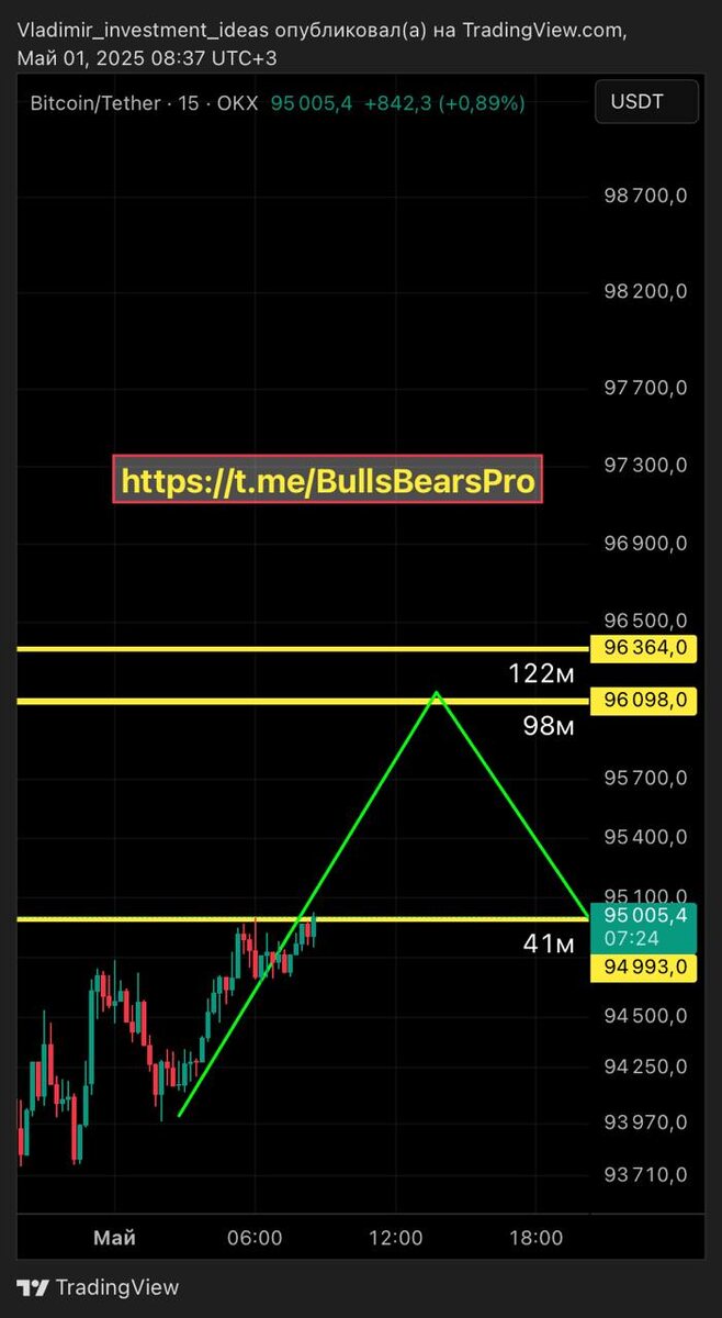 Всем привет! Ну что пришли к 1ому уровню и чутка отскочили, штурмуем 2й уровень, думаю цену по битку в 96000 увидим уже скоро👍помогает Вам мои прогнозы и видение рынка?)))