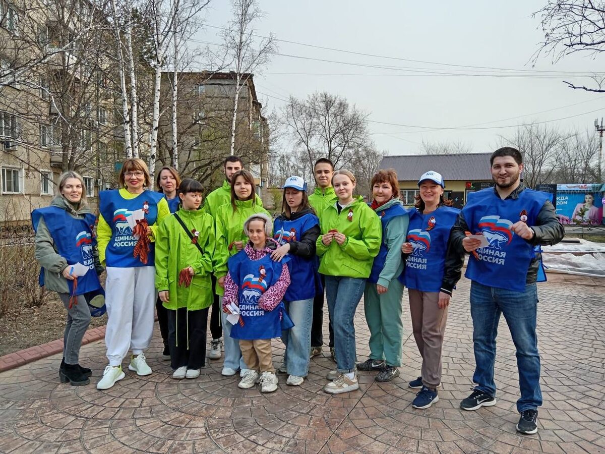 💚 ОЭО ЕАО "Зелёный росток" и первичные отделения п. Приамурский местного отделения ВПП "ЕДИНАЯ РОССИЯ" активно проводят акцию «Георгиевская ленточка» на протяжении всей недели.