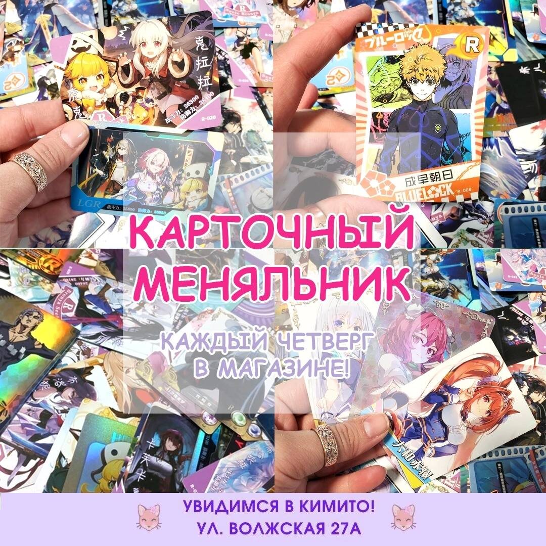 😎ЧЕТВЕРГ!❤️ А это значит стартует наш Карточный меняльник! Напоминаем, что весь четверг вы можете обмениваться картами в магазине! Вы можете меняться между собой или же с Кимито! У нас специально для вас есть огромный Пак карт для обмена ❤️ Для вашего удобства мы сделали время сбора в 15:00, но вы так же можете походить в любое другое время ❤️ Так что если у вас много дубляжек, никак не получается выбить карту с тем самым персонажем - приходи! Главное правило - обменивайтесь картами того же ранга! Т.е. если вы хотите получить SR то отдать вы тоже должны SR! 🕺Настало время пересмотреть свою коллекцию и получить новые карточки!🥰 Ждем тебя с 10:00 до 20:00 г. Саратов, Ул. Волжская 27а ❤️KimiTo - Твой Аниме магазин!❤️
