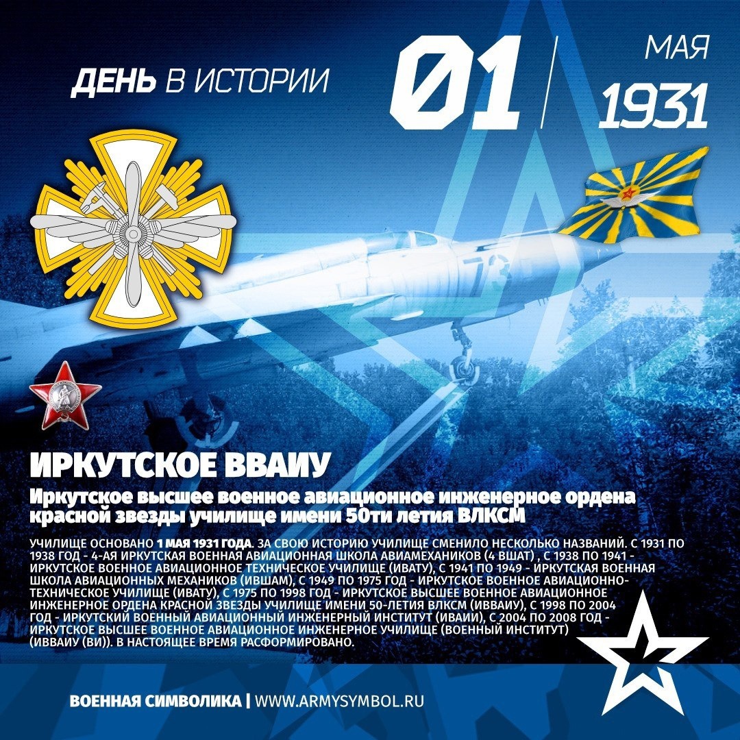 Иркутское ВВАИУ с 1931 Иркутское высшее военное авиационное инженерное училище (ИВВАИУ) основано 1 мая 1931 года. За свою историю училище сменило несколько названий. С 1931 по 1938 год - 4-ая Иркутская военная авиационная школа авиамехаников (4 ВШАТ) , с 1938 по 1941 - Иркутское военное авиационное техническое училище (ИВАТУ), с 1941 по 1949 - Иркутская военная школа авиационных механиков (ИВШАМ), с 1949 по 1975 год - Иркутское военное авиационно-техническое училище (ИВАТУ), с 1975 по 1998 год - Иркутское высшее военное авиационное инженерное ордена Красной Звезды училище имени 50-летия ВЛКСМ (ИВВАИУ), с 1998 по 2004 год - Иркутский военный авиационный инженерный институт (ИВАИИ), с 2004 по 2008 год - Иркутское высшее военное авиационное инженерное училище (военный институт) (ИВВАИУ (ВИ)). В начале января 2009 года согласно распоряжению правительства РФ Иркутское ВВАИУ было присоеди Показать полностью... Подпишитесь на наши группы ВКонтакте и в Одноклассниках - читайте, смотрите и к