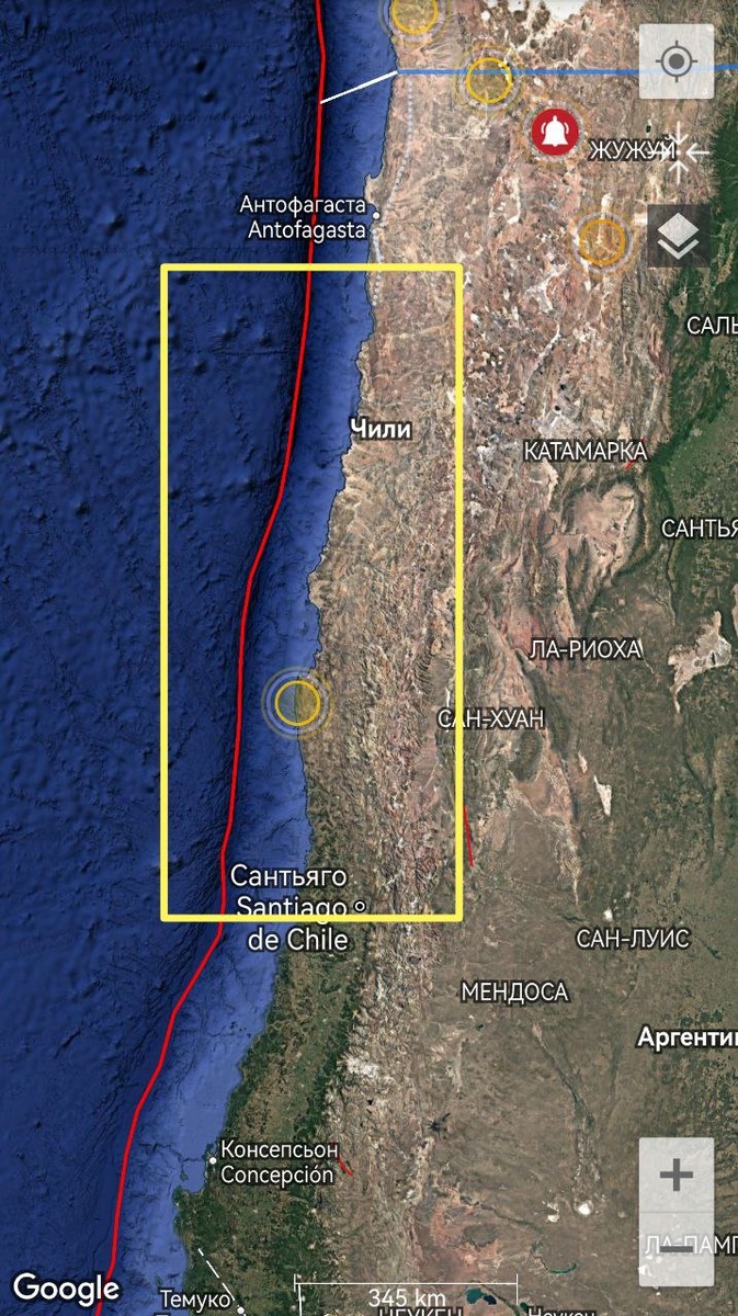 Чили в отмеченной зоне всё так же под вероятностью М5.7+