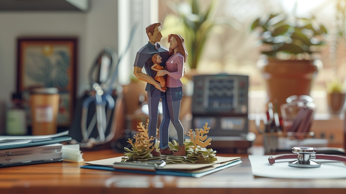 Создано на основе запроса: Photorealistic paper pop-up diorama of a woman holding her child, both wearing purple shirts and dark blue pants, intricately folded and layered, emerging from an open manila folder designed to resemble a pop-up book, placed on a doctor's desk with subtle clinical elements (stethoscope, clipboard), soft natural lighting, minimal background clutter, high detail, realistic textures of paper and folder materials --- Автоперевод: Фотореалистическая бумажная всплывающая диорама женщины, держащая своего ребенка, носившись с фиолетовыми рубашками и темно-синими брюками, замысловато сложенными и слоистыми, выходящими из папки с открытой манилькой, предназначенной для напоминания всплывающей книги, расположенной на столе доктора с тонкими клиническими элементами (стетоскоп, буферный завод), мягкий естественный, минимум фоновый фон, высокие детали. Что скажешь? 🤔 https://dzen.ru/id/65c0c65c86e4f837c27b24d7 #ИИ #AI #нейросеть #midjourney #art