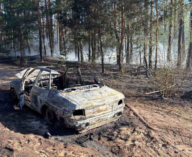 В Калинковичском районе из-за поджога автомобиля загорелся лес