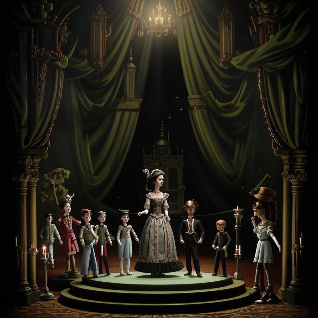 (Италия, 1848 год) Графиня Виоланта д’Эсте опустила бархатный занавес, скрывая от зрителей не кукол, а детей, выскальзывающих из потайных люков в полу. Её театр «Пульчинелла» в Венеции был не просто развлечением — это был заговор в шелках и дереве. Куклы, изображавшие королей, кардиналов и купцов, «оживали» так убедительно, что зрители клялись: в них вселялись духи. Но секрет был проще: внутри каждой марионетки прятался ребёнок — сирота, беглец или вор, чьи голоса сливались в сатиру, от которой дрожали власти. — «Граф Жадность продаёт воздух, герцог Ложь меряет народ на аршины!» — кричал деревянный Арлекин, а из его разукрашенного рта звучал голос двенадцатилетнего Луки, сына казнённого революционера. Виоланта собирала этих детей как драгоценности. В подвале театра она учила их не только двигать куклами, но и читать, писать, разбирать шифры. «Ваши голоса — острее шпаг», — говорила она, поправляя нити марионетки Папы Римского, которую управляла девочка Тереза, сбе