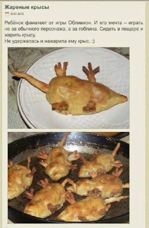 согласно Терри Пратчетту жаренные крысы это мечта любого гнома, а быть гномом мечта любого мужчины
