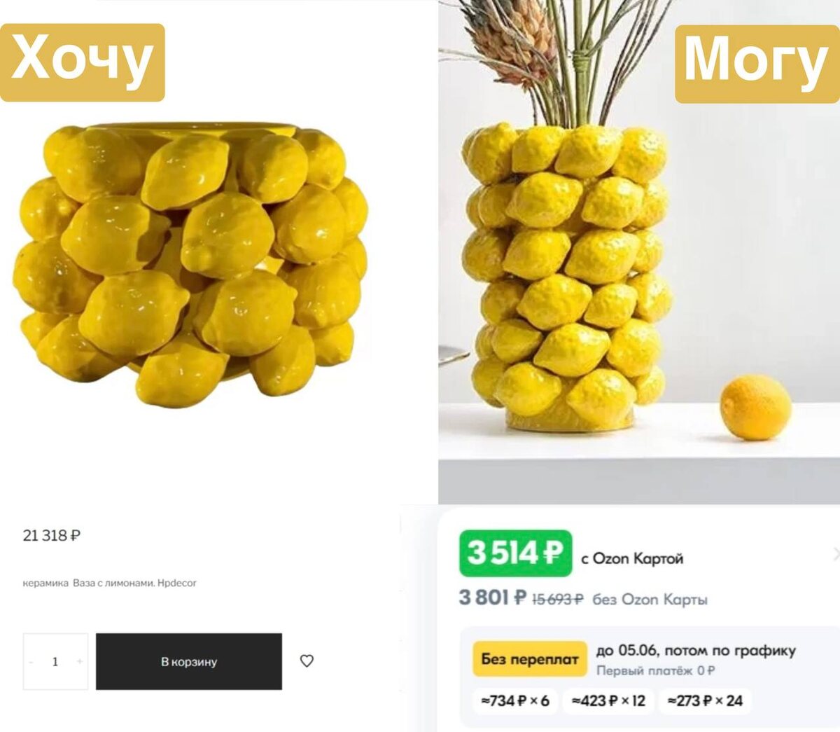 Сегодня на повестке дня – та самая популярная ваза с лимончиками. 🍋 Вы тоже видели эти дизайнерские шедевры за 20-30 тысяч рублей? Смотришь на ценник и чувствуешь себя енотом, который готов отдать все свои блестяшки за эту красоту. 🦝 Но не спешите грабить банк!