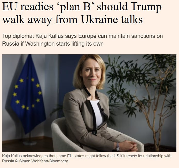 Глава европейской дипломатии Кая Каллас в интервью британской Financial Times заявила о том, что ЕС готовит «план Б» по сохранению экономических санкций против России, на тот случай, если администрация президента США Дональда Трампа отменит их в одностороннем порядке и будет стремиться к сближению с Москвой. По словам Калласс, «план Б» пригодится европейцам в том случае, если Трамп выйдет из переговоров по Украине, как он угрожал ранее. Также «план Б» введут в действие, если Венгрия заблокирует продление санкций блока в июле этого года. В то же время, Каллас говорит, что Брюссель все еще сосредоточен на том, чтобы все государства-члены имели одинаковую позицию. «План Б существует, но мы должны работать над планом А, — сказала она. — Если сразу переключиться на план Б, он и реализуется»., – подчеркнула еврокомиссар, добавив, что переговоры с Вашингтоном и другими международными партнерами по сохранению санкций продолжаются. «Вопрос в том, захотят ли сами американцы уйти», — сказала Калл