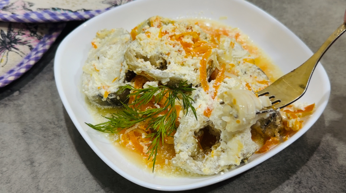 Минтай в сметане с луком и морковью. Когда нет времени готовить рыбу, пользуюсь этим рецептом, получается ну ооочень вкусно