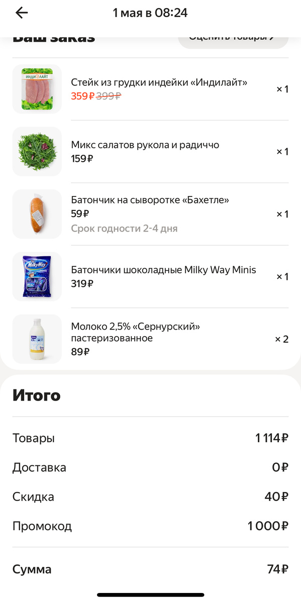 В списке видела, что у них ещё акция сколько то % кэшбек на заказ от 400₽ был.
