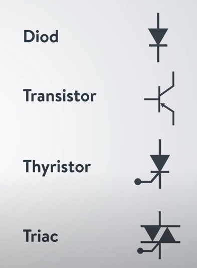 Многие из этих полупроводниковых радиоэлементов, думаю, вам уже знакомы. Это диод, транзистор, тиристор и симистор.