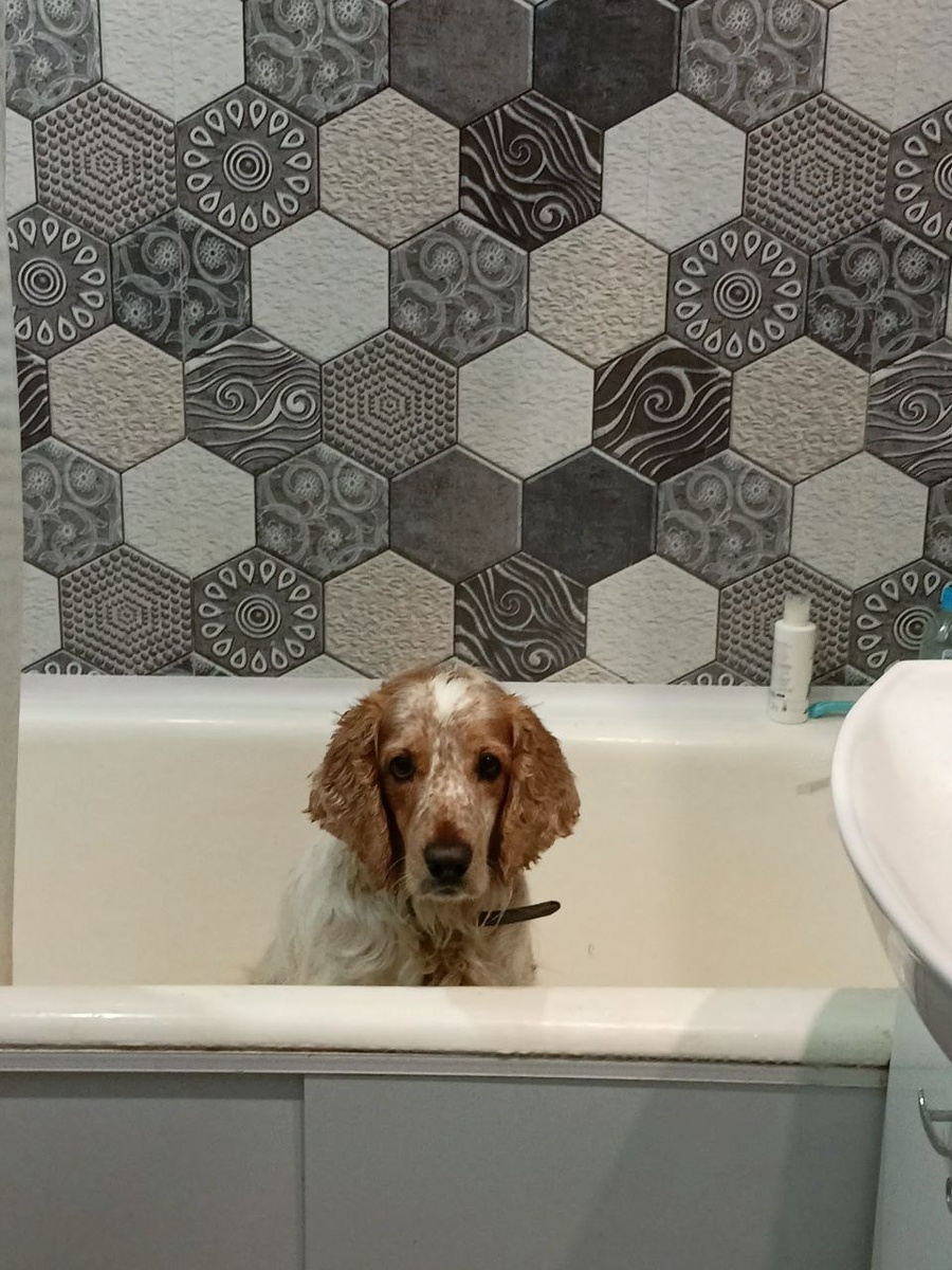 Привет от Тобика ,, Люблю мыться,, #ужедома