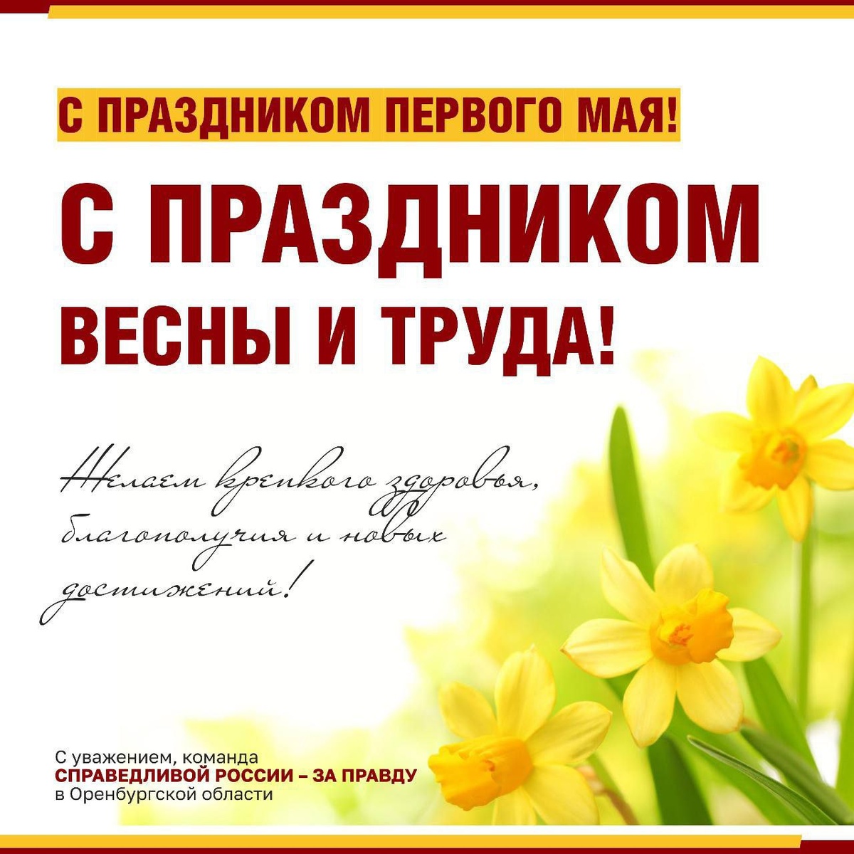 🙌 С праздником весны и труда! С праздником Первомая! Сегодня мы празднуем День мира и труда — особенный день, символизирующий борьбу человечества за благополучие и достойные условия труда. Созидательным трудом родилось всё лучшее, что создано человечеством. Первомай напоминает нам о стремлении к справедливости, о борьбе людей за свои права и возможности, а ещё о том, что труд — основа общественного благополучия и развития для каждого. 🤍 Желаем Вам крепкого здоровья, продуктивного труда, благополучия и новых достижений на благо нашей страны!