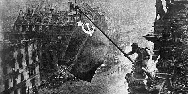 1 мая 1945 года в Берлине над Рейхстагом Алексеем Берестом, Михаилом Егоровым и Мелитоном Кантарией был установлен штурмовой флаг 150-й