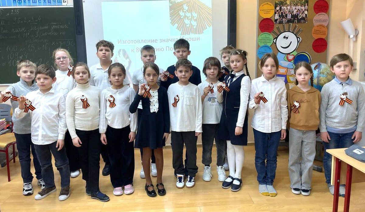 Мастер-класс 📆🥇 Ученики 3 «Р» класса вместе с классным руководителем Трофимовой Светланой Владимировной изготовили значки-броши к 80-летию Великой Победы. 🎗 Основным элементом броши выступила Георгиевская ленточка, которая в современной России стала одним из главных символов Дня Победы. 👑 Ребята узнали, что история ленты берёт начало в 1769 году, когда императрица Екатерина II учредила орден Святого Георгия, названный в честь Георгия Победоносца. Это был эмалевый белый крест на шёлковой ленте с тремя чёрными и двумя жёлтыми (оранжевыми) полосами. Именно от этой ленты и произошла Георгиевская ленточка. 🕊 В центре броши расположился белый голубь - символ мира, символ борьбы против войн и насилия. Ты - символ мира и добра, Мой голубь белый, вольный! Напомни людям, что пора Уже закончить войны! Взлети ты выше облаков! Пусть нас услышит каждый: Лишь мир важнее всех основ – Всё без него не важно… ✍️ Ирина Микулович #Победа80 #ДОНМ