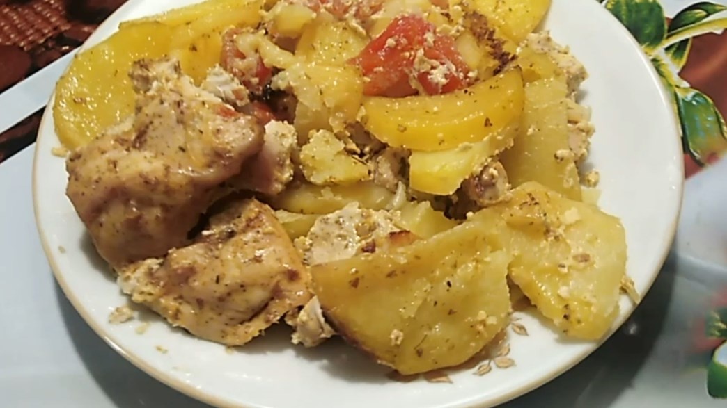 Всем привет! Сегодня готовлю куриное филе в духовке. Мясо получается мягкое, ароматное и очень нежное. Филе курицы нарежем на кусочки Посолим, всыпем паприку и аджику и перемешаем Картофель и лук тонко порежем Помидоры нарежем кубиком Измельчим чеснок Добавим майонез и всё перемешаем На противень выложим картофель с мясом и накроем фольгой Поставим в духовку, разогретую до 180 градусов на один час Через час фольгу уберем и будем запекать еще 15 минут при 200 градусах Получилось простое и вкусное блюдо, которое можно приготовить на праздничный стол или на обед. Картошка мягкая, а мясо ароматное и нежное Приятного аппетита! Ссылка на видео: Рецепт: Куриное филе 1 кг Картофель 1 кг Лук 1 шт Чеснок 1 шт Соль 1 столовая ложка Майонез 5 столовых ложек Аджика острая 2 столовые ложки Помидоры 1 шт Специи