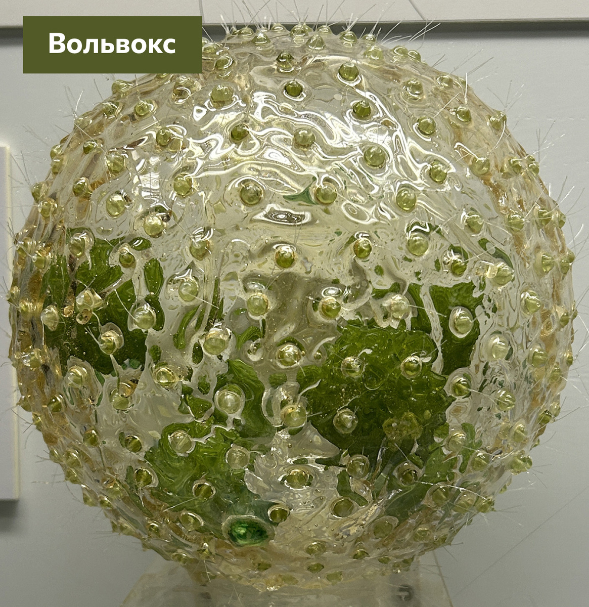 Род колониальных зелёных водорослей. Его тело объединяет до 50 тысяч клеток. Самые крупные из них участвуют в половом или в вегетативном размножении. Клетки, оснащённые светочувствительными глазками, отвечают за навигацию. Гребцы-жгутиконосцы — за движение клеточной «коммуны». Все клетки колонии связаны между собой и действуют слаженно. #предметсвыставки