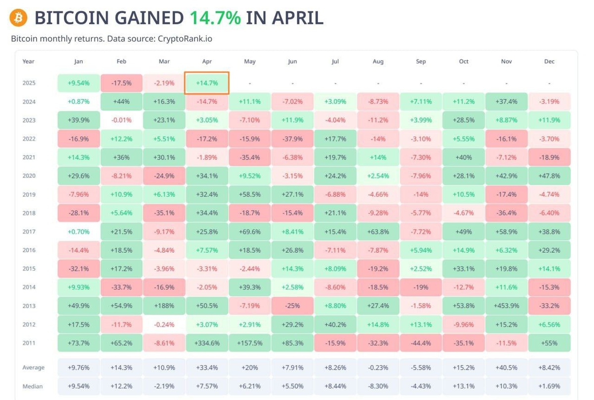 BTC завершил апрель ростом на 14.7% апрель 2024г он завершил падением на 14.7% #BTC #2025