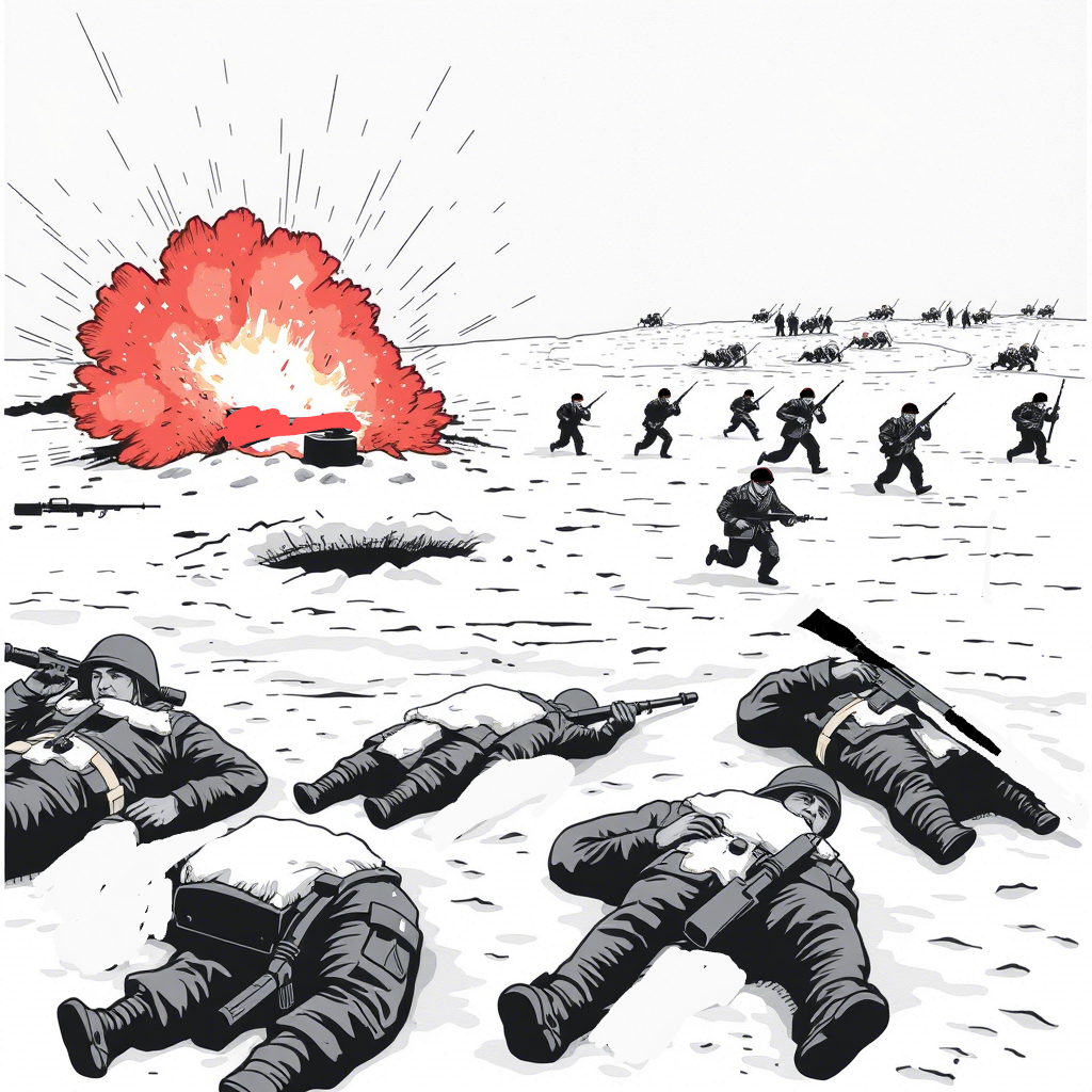 Случай, который мне рассказал очевидец произошел под Ржевом в полосе Калининского фронта во время одного из огромного числа попыток прорваться к городу. Кроме крупных наступательных операций были и более мелкие. Все они заканчивались неудачей. Захват одной-двух деревень не приводил к какому-то серьезному успеху. Вот и в тот раз в середине января 1943 года поступил приказ взять и удерживать до особого распоряжения ближайшую деревню. Наших бойцов только рота. Их не поддерживала ни артиллерия, ни авиация. Даже танков не выделили. Спрашивать и выяснять у командования себе дороже. Так это ещё не всё. Поле до деревни, пока ещё занятой противником, оказалось заминировано. А приказ был наступать. То есть бежать предстояло по минам! Единственным утешением было то, что частично мины обезвредили артиллеристы (наши или не наши — в этом случае неважно) и частично красноармейцы, пытавшиеся до этого взять деревню. Бойцы, бежавшие по полю, наступали на мины, которые взрывались, лишая жизней наступа