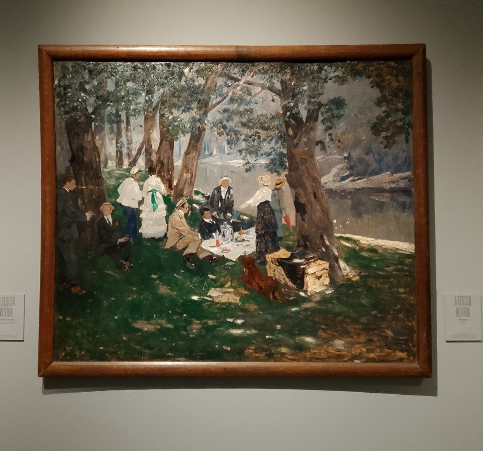 Алексей Исупов большую часть жизни прожил во Франции и Италии вместе с женой, не возвращаясь в СССР. У обоих были только советские паспорта. От иностранного гражданства отказывались. Интересно. На картине Алексея Исупова сюжет очень популярный. Пикников у воды в импрессионизме великое множество. И этот тоже очень хороший.