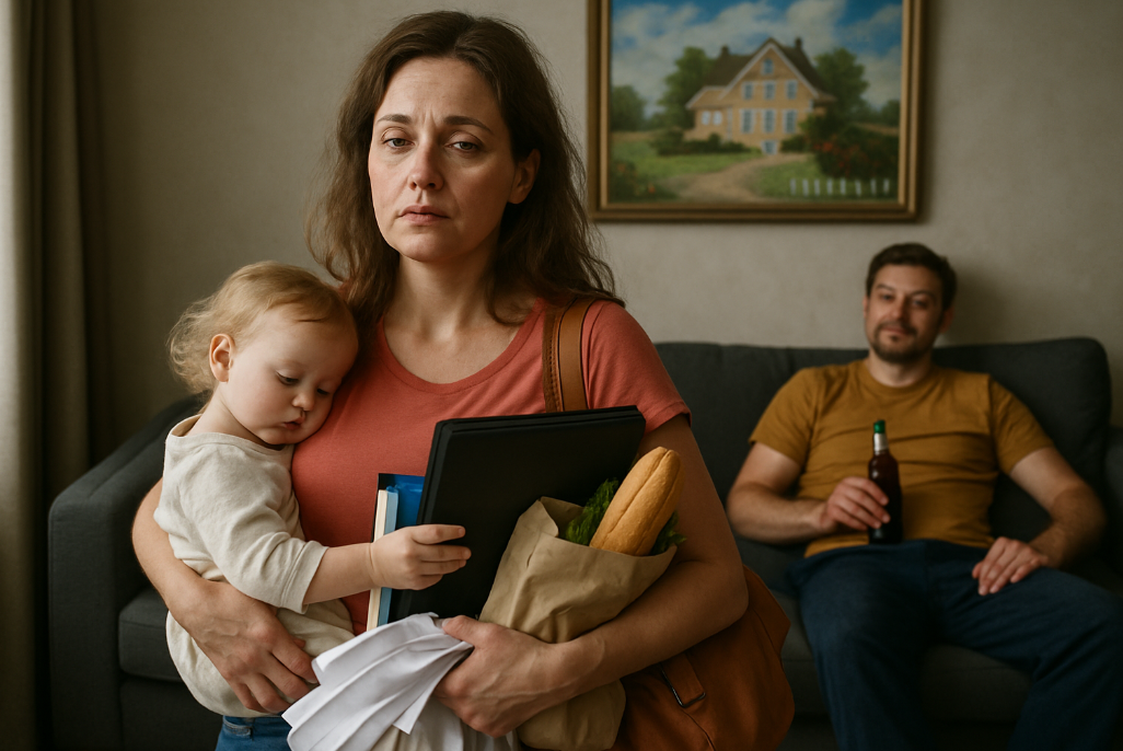 Это «два по 100%» у неё — и «я устал» у него. Он не думает, что ребёнок — это общий проект.