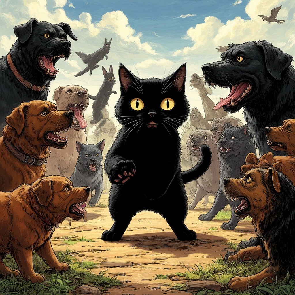 Лунный свет резал перрон, как лезвие. Шкет стоял у вагона, вцепившись когтями в ржавую ступеньку. Внутри пахло маслом и чужими странами. «Слезай! — Гавчик вцепился зубами в его хвост. — Ты же не знаешь, куда он едет!» «Знаю, — шипел Шкет, вырываясь. — Туда, где есть другие… *мои*». Царапка молча бросила к его лапам олений рог — тот самый, что таскала годами. «Возьми. Чтобы помнил, как драться». Буся, облизывая остатки рыбной банки, всхлипнул: «А если там нет еды? Ты сдохнешь!» Их спор разорвал хриплый лай. Из тени вышел Рекс — альфа-мастиф с шрамами, похожими на карту ненависти. За ним, поджав хвост, крался Шнырь, тощий пёс-доносчик. «Собираетесь бежать? — зарычал Рекс. — Чужака — на все четыре лапы. Но моя земля не отпустит *предателей*». Гавчик ощетинился: «Мы не твои!» «Вы дышите моим воздухом. — Рекс пнул лапой Царапку, и та взвизгнула. — Поэтому решаю я». Шкет спрыгнул с подножки, когти звякнули о рельсы. «Отпусти их. Я уйду один». «Нет! — взвыл