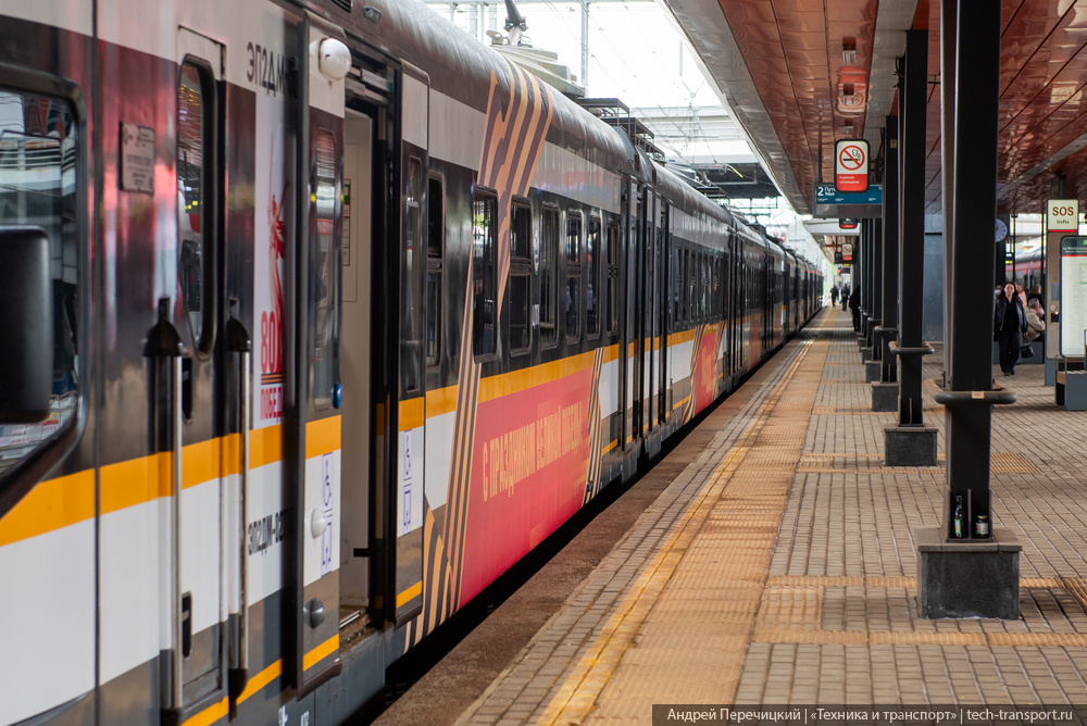 Тематические поезда - это всегда приятно. Как минимум, они вносят разнообразие в обычные рутинные поездки на работу. Но вдвойне хорошо, когда состав не просто тематически оформляют, но и действительно интересно наполняют. Именно такой поезд ЦППК вчера выпустила на линию Запуск приурочен к 80-й годовщине Великой Победы, а состав оформлен в единой стилистике памятной даты При этом, это не просто проект из серии "быстренько поклеили и забыли" Помимо красочного оформления бортов вагонов здесь есть кое-что ещё - оно ждёт внутри Плакаты в вагонах рассказывают истории о героях-транспортниках - не только железнодорожниках - и их подвигах в годы войны Всё сопровождается архивными фотографиями Ну и в целом, салоны красочно оформлены Поезд можно встретить на маршрутах от Апрелевки до Захарово - это весь четвертый диаметр и нехилый кусок дальнего пригорода Хочется сказать "торопитесь прокатиться", но спешить не обязательно - после праздника оформление снимать не собираются Поезд будет курсировать