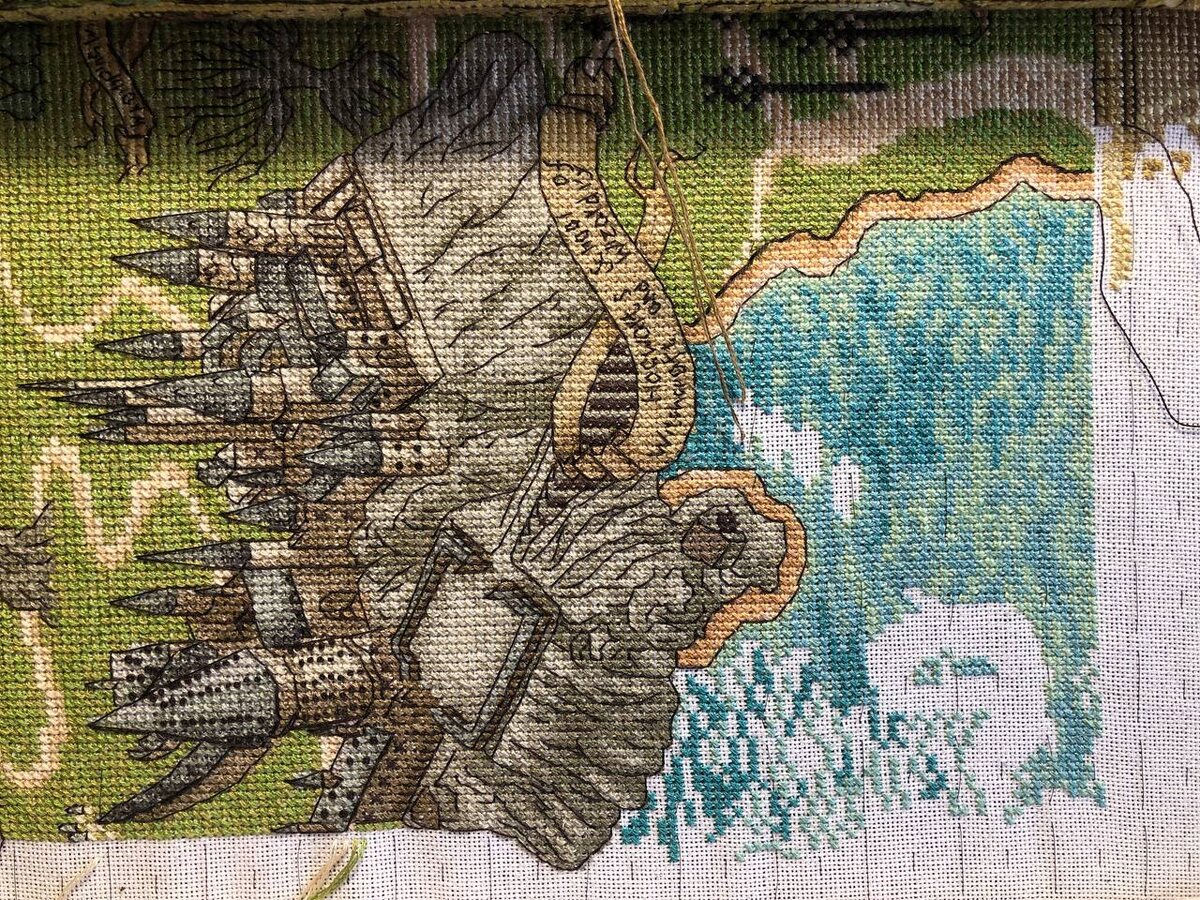 Карта Хогвартса 51% + 666хх = 51% Озеро готово ✅ и лодочки и кораблик Без бэка выглядит смазано, бэка будет на этом фрагменте ещё на 650хх в пересчете саги, надо для этого ждать подходящее задание До края рядочка остаётся совсем немного. Добэкать озеро и сделать рамочку. Но все равно, 2-3 задания для этого понадобятся. 🧙♀️ Иллюзия 📚 История магии 💌 Библиотека школы