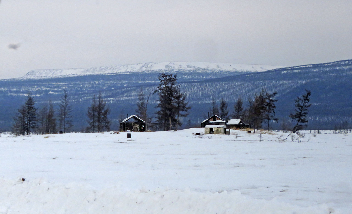 Представляющему собой целый городок деревянных мавзолеев. В Якутии такие называют арангасы (если на ножках) и чардааты (если прямо от земли, а вот закопать усопшего в мёрзлую землю - слишком трудно), но какая конструкция здесь - не понять под глубоким снегом:
