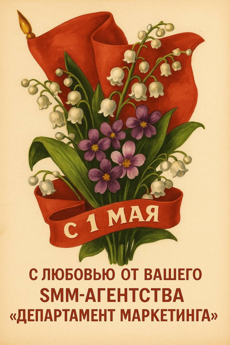 С Праздником Весны и Труда! (или как мы это называем — «выходной, когда всё равно работаешь») Когда-то 1 мая был днём борьбы за права рабочих. В 1886 году в Чикаго люди выходили на улицы, требуя 8-часовой рабочий день. В 1891 — первая маёвка в Петербурге. А в 2025 — вы с утра залипаете в отчёты, агрегаторы, объекты и расчёты, планируете контент и проверяете рекламу. Праздник есть. Весна — пришла. Труд — остался. Работать в своё удовольствие — это тоже свобода. Создавать, строить, продвигать, запускать — не потому что «надо», а потому что ты выбираешь. Так что если вы сегодня не на шашлыках, а на работе — вы не одни, вся наша команда с вами! И да — вы молодцы. Картинку выбрала именно ту, которая у меня ассоциируется с этим праздником, эту открытку, сделаную ещё в СССР я видела все детство в серванте, а эту уже сделала нейросеть, сохранив весь колорит. Как вам? С теплом, SMM-агентство «Департамент Маркетинга»