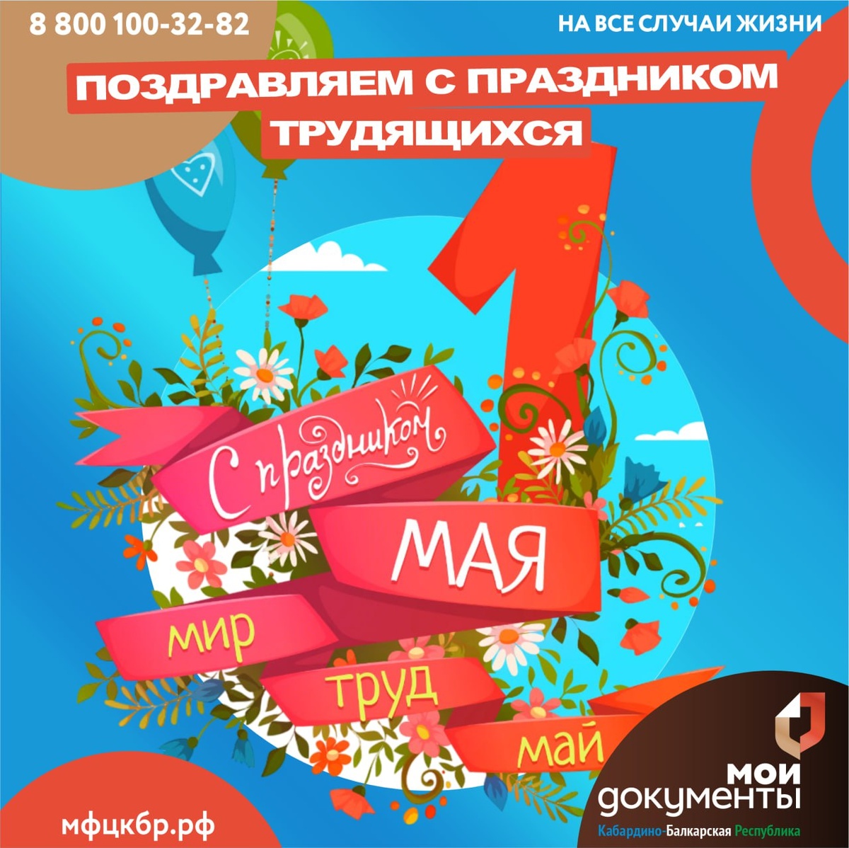 Дорогие граждане! Коллектив Многофункционального центра Кабардино-Балкарской Республики от всей души поздравляет вас с праздником Весны и Труда, с Днём международной солидарности трудящихся! Первомай — это символ обновления, расцвета природы и единства людей, чей труд является основой процветания общества. В этот день мы особенно остро чувствуем, как важны взаимоподдержка, сплочённость и стремление к общим целям. Ваши усилия, ответственность и ежедневное посвящение себя труду, вдохновляют нас работать ещё эффективнее, чтобы обеспечивать качественное обслуживание и вносить вклад в развитие нашей родной республики. Желаем всем крепкого здоровья, неиссякаемой энергии, семейного благополучия и новых достижений в трудовой деятельности. Пусть весна принесёт в каждый дом радость, а солидарность и взаимопонимание станут залогом наших общих успехов! С праздником! С Первомаем! С уважением, коллектив МФЦ Кабардино-Балкарской Республики. Есть вопрос? Пишите ✏️ 🤎 #МФЦКБР #МФЦ #МоиДокументы