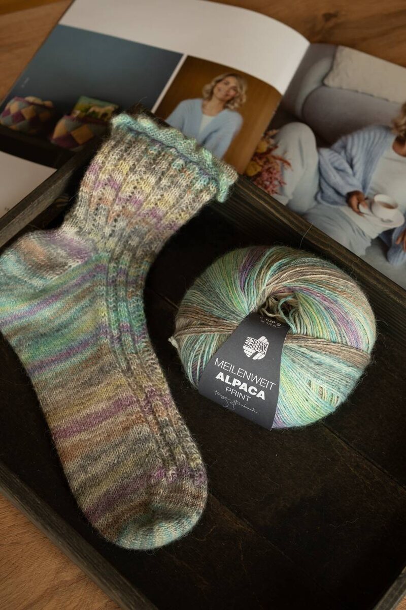 Meilenweit alpaca print. Тонкая нить теплой альпака с укреплением полиамидом. Создана для вязания изящных носочков, чтобы согреть ваши ножки😉 Полотно имеет легкий ворс альпака, пластично, хорошо и ровно вяжется на тонких деревянных спицах от 2мм. Также подойдет для вязания головных уборов. Всего один моток понадобится на носочную пару или шапку с отворотом. 70% беби альпака, 30% полиамид 100 грамм/420 метров 1616₽, вместо 2155₽🔥 https://6wool.ru/catalog/pryazha/meilenweit-100-alpaca-print1381/