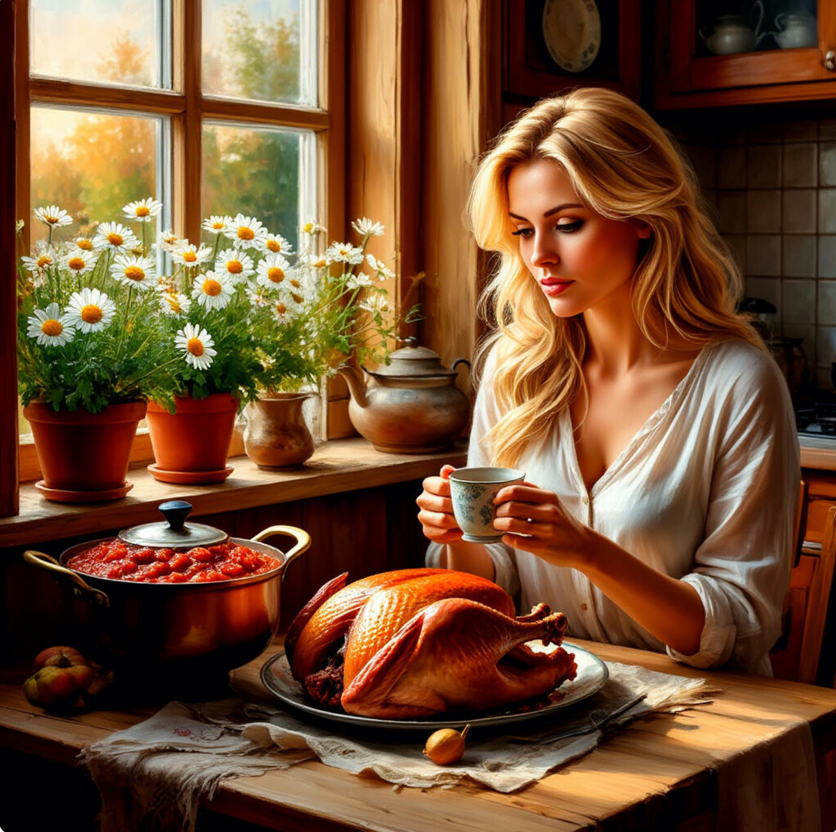 Я молчала. Смотрела на борщ. На кастрюлю, которую мы выбирали вместе в первый год брака. На ромашки за окном, которые я поливала, пока он "работал допоздна". На свою жизнь, которая вдруг стала чужой.