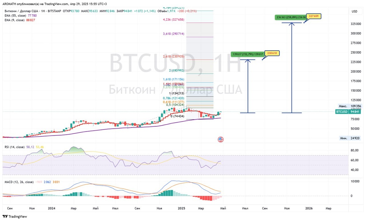 📈 #BTC Bitcoin давно и понятно едет вверх. 🔮 Жду 230000 и 327000 долларов для начала. Крипто-ралли будет мощное уже в этом году, все повторится вновь и вновь. Большинство все равно не купят и не додержат на эти иксы, зато будут новости в газетах телеграмах и на радио все снова читать и изумляться, да на красивые диаграммы роста столбиками с десятками и сотней % по годам смотреть. Рубрика #макротренды и #макроэкономика в канале Aromath💤 работает исправно. #крипта с нами 💯 Самое ценное 💯 / Индекс силы 👍 / Лучшее предложение🎩