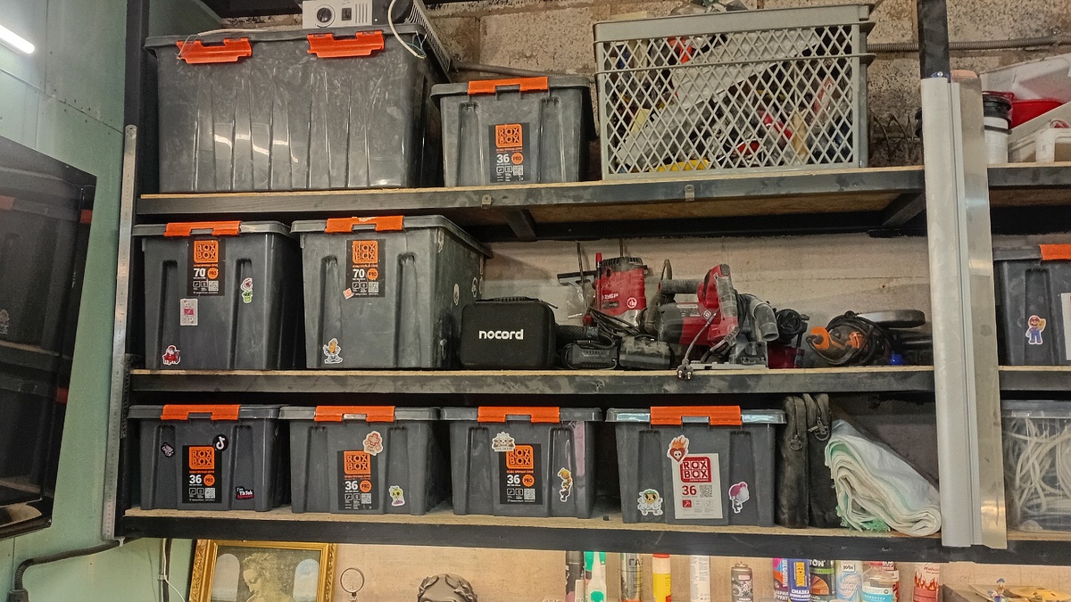 Раньше у меня всё лежало “по старинке”: кое-что в строительных чемоданах, что-то в старых ведрах, пачки бумаги по бухгалтерии — с краю под столом, остальной инструмент — в рюкзаках и мешках.