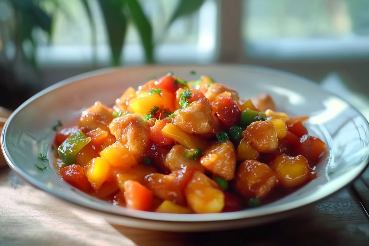Создано на основе запроса: | Title: Sweet and Sour Chicken Recipe | STYLE: Close-up Shot right view | EMOTION: realistic as possible
