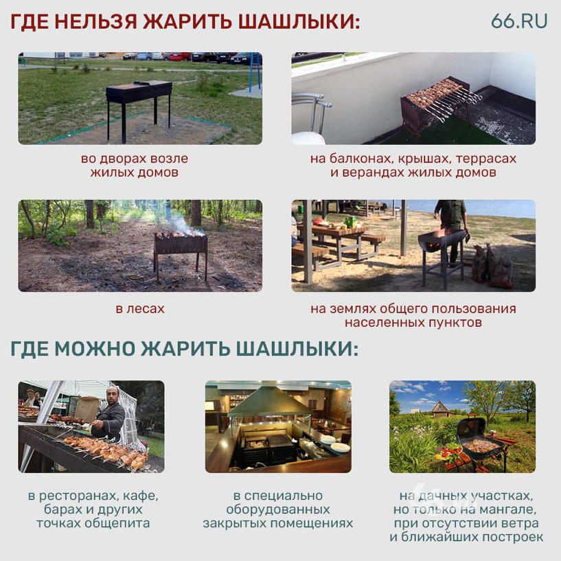 Мясо для шашлыка за год стало дороже в среднем на 10%. Овощи подорожали на 10–30% в зависимости от вида, подсчитали аналитики АТОЛ. Мясо в упаковке: Овощи: Если вы захотите разнообразить меню купатами, то придется заплатить еще 265 рублей. Лаваш обойдется в 79 рублей. Если у вас нет шампуров, то за комплект надо будет отдать еще 1500 рублей. Древесный уголь в среднем стоит 314 рублей, а средство для розжига — 231 рубль. В Свердловской области действует пожароопасный режим. В этот период запрещено разводить костры и готовить пищу на огне. Штрафы достигают 800 тысяч рублей. Главная новость по теме