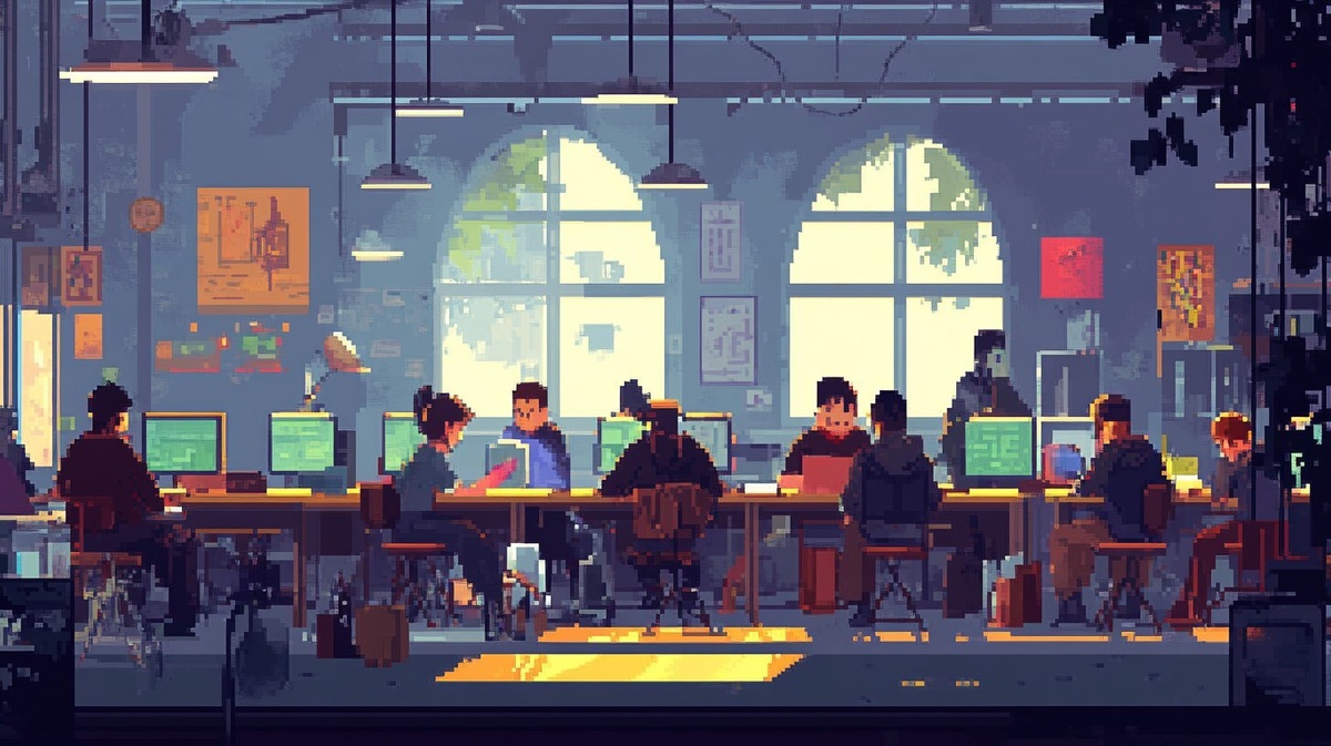 Создано на основе запроса: During a practical session at an art university, everyone is busy working on their projects. In pixel art. --- Автоперевод: Во время практической сессии в художественном университете все заняты работой над своими проектами. Отлично выглядит? 🤔 https://dzen.ru/id/65c0c65c86e4f837c27b24d7 #ИИ #AI #нейросеть #midjourney #art