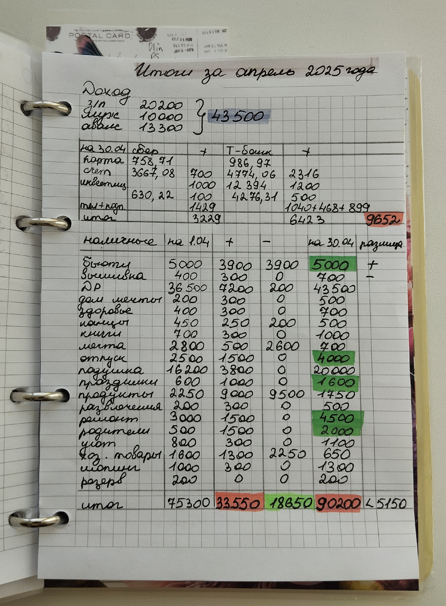 Апрельский отчет: бюджет по конвертам и корректировка планов.