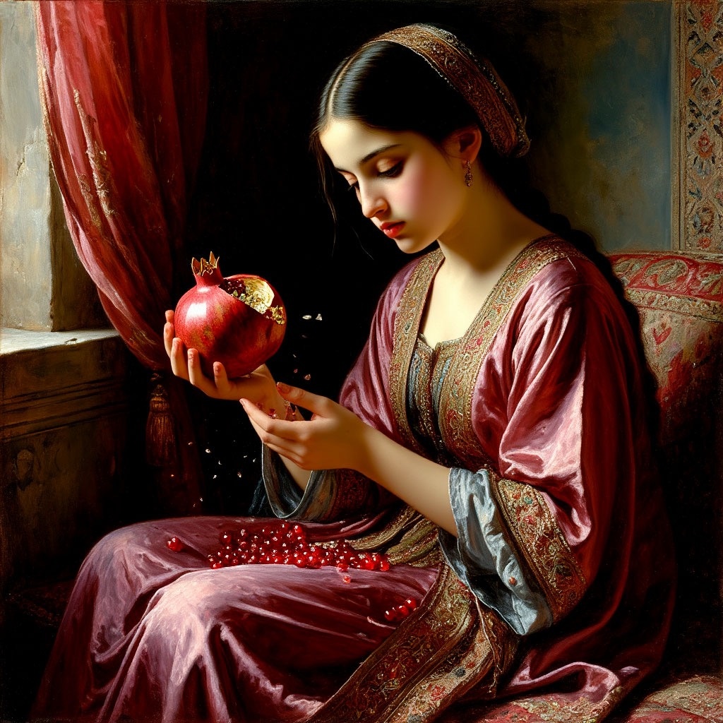 Дурман всё ещё курился в воздухе, но теперь к запаху рахат-лукума и пота примешивался запах… запах свежего граната, смешанного со слезами. Запах новой жизни, полной опасностей и надежд. Жизни, в которой ей предстояло сыграть свою роль. И эта роль, она чувствовала, будет не из лёгких.