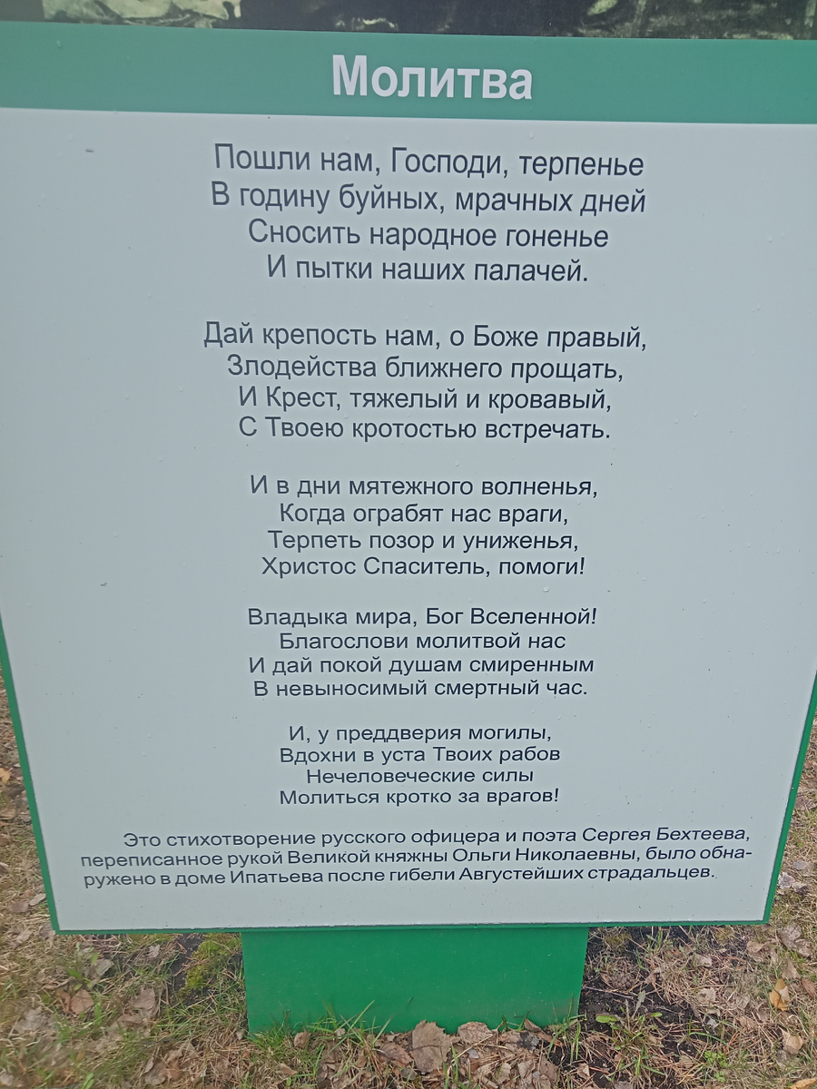 По иронии судьбы я весь пролетарский праздник шатаюсь по "царским местам". На экскурсии в Екатеринбурге, или, как говорил гражданин Соловьев-Шапиро, в Е-бурге. Сначала нас повезли в монастырь, построенный на месте шахт, где был окончательно решен вопрос с династией "Романовых", а сейчас стою перед церковью, где"император" принял "мученическую смерть. А вам небольшой тест: в каком советском фильме звучала песня на эти стихи? Парочка плакатов из монастыря. Вот эти бы слова Николая, как говорится: "богу в уши" Это написал царь, который немедленно после воцарения ломанулся на "раздел китайского пирога", потом русско-японская, потом ПМВ. И конец. А вот цитата великомученика-цесаревича: Напоминаю, что врачи отмерили наследнику 15-16 лет жизни. Так что эти благие пожелания были чистой фантастикой. Впрочем, будь Алеша и здоров, как бык, они такой же фантастикой и остались бы. А вот великомученица Алиса Та самая, которая твердила мужу, чтобы он был "Иваном Грозным", ибо с российскими холопами