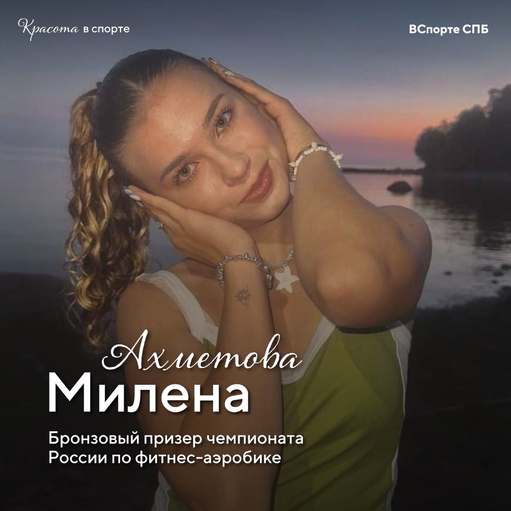 #КрасотаВСпорте ❤️ 💛 Очаровательная Милена Ахметова поделилась с нами любимым местом в городе, самой нелепой покупкой в интернете и самым памятным подарком в жизни! 🤩 Милена занимается фитнес-аэробикой и входит в состав команд «Феномен» и «Фэинт». Она побеждала на всероссийских соревнованиях и московском фестивале «Я выбираю спорт», завоевывала бронзовые медали чемпионата России, а также многократно становилась победителем чемпионата Санкт-Петербурга. Какое твое любимое место в городе? Набережная у станции метро «Беговая». Когда я хочу отдохнуть с друзьями или просто развеяться от учёбы, я сразу приезжаю туда. Самый памятный подарок в жизни? Мой самый памятный подарок подарила мама на моё десятилетие. Это мой шпиц - Яся! Твоя самая нелепая покупка в Интернете? Моя указка в виде указательного пальца никого не оставила равнодушным) 🙌Будь ВСпорте!