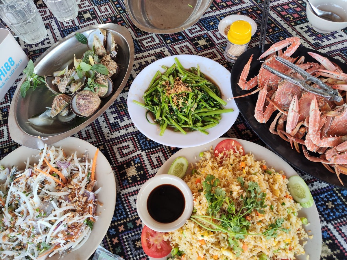 Вкусняшки во Вьетнаме. И все это за один ужин! Знаете, что там есть? Креветки. Куча какой-то зелени. Жареный по-вьетнамски рис (ммм! вкустнотища!!). Гребешки - это которые ракушки. Их не очень люблю, хотя вкусно и считаются деликатесом. Местные очень любят. Крабы. Тоже, вроде как, деликатес. Тоже вкусно. Но что-то очень мало что в этих крабах можно есть. Дольше разгрызаешь и разламываешь панцирь, чем что-то жуешь. Мне кажется, что это как наши семечки. Сидишь, чистишь, делом занят. А съел не так и много. Ну, то есть, чтобы иметь повод подольше посидеть за столом, пообщаться и побеседовать, понаслаждаться вкусом и при этом не съедать много. Не зря же вьетнамцы такие худяшки. Там практически нет полных. А еще в тот ужин (или обед? я уже не помню, что это было), на стол подали то, что я никогда не пробовала - икру морских ежей. Это было вкусно. Но, по-моему, там все-таки было больше специй и добавок (орехов, что ли?), чем самих морских ежей. Но все равно здорово. Люблю что-нибу