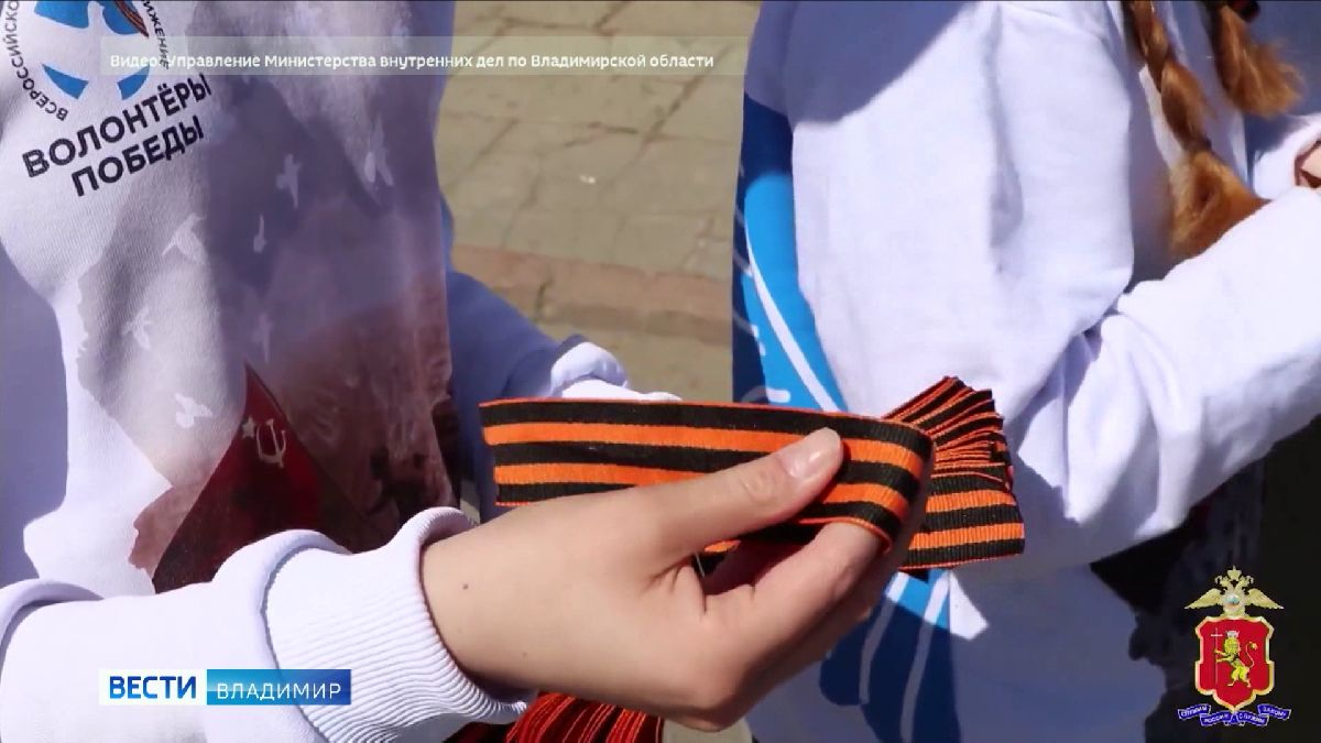 Волонтеры раздают прохожим и автолюбителям георгиевские ленточки - символа героизма, воинской доблести и славы защитников. Элемент боевых знамён гвардейских частей России, с 2022 года Георгиевская лента приравнена к государственным символам воинской славы. ГТРК "Владимир"