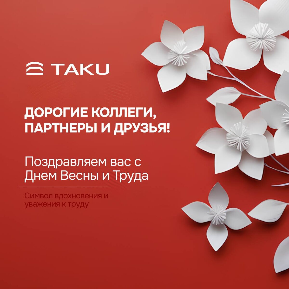 Коллеги, партнёры и друзья, поздравляем вас с 1 Мая! 🌿 ⠀ Этот день напоминает нам о ценности труда, командной работы и стремления к развитию. Весна символизирует обновление и рост. Пусть она принесёт новые идеи, вдохновение и уверенность в завтрашнем дне. ⠀ Благодарим каждого из вас за труд, сотрудничество и вклад в общее дело. С уважением, команда TAKU