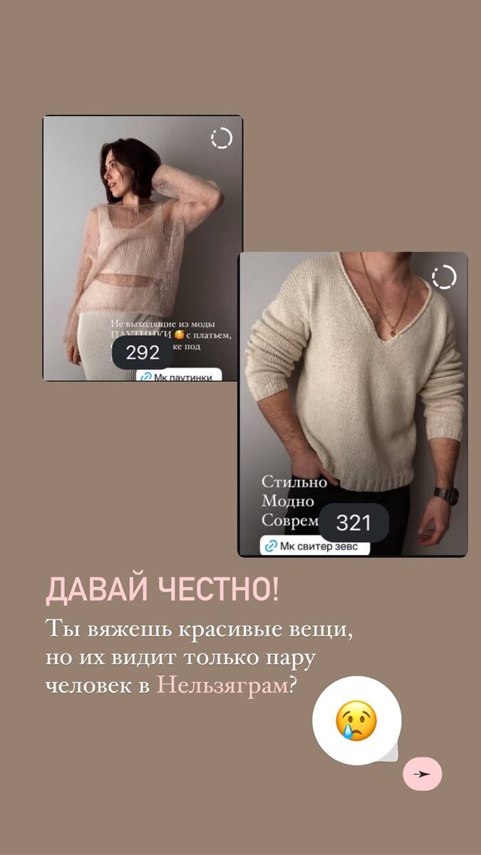 🌌 Хочешь, чтобы твои вязаные изделия находили сами клиенты — даже пока ты отдыхаешь? Тогда тебе точно на наш бесплатный эфир "Pinterest для мастеров вязания"! Pinterest — это визуальный поисковик, где твои работы могут приносить заказы месяцами без рекламы и сторис На эфире я расскажу: ⏺Почему Pinterest — идеальное место для мастера вязания ⏺Какие ошибки мешают получать трафик ⏺Как начать продвигаться без бюджета ⏺И как сделать так, чтобы твои изделия находили клиенты сами Эфир будет бесплатным, но сохранится только в клубе Pro ВЯЗКИЙ КОНТЕНТ (войти в клуб уже можно) ↕️4 мая в 11:00 ↕️этот канал Не пропустите эфир или смотрите его в клубе в любое удобное время СЕГОДНЯ и до 5 мая ВХОД В КЛУБ ОТКРЫТ (по ссылке вся информация)