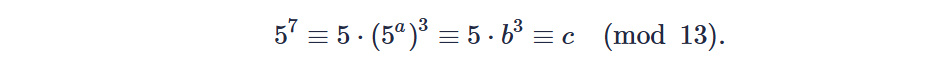 5 во второй это 25, остаток от деления на 13 получится -1. -1 в нечетной степени 3 это так же -1. -1*5=-5