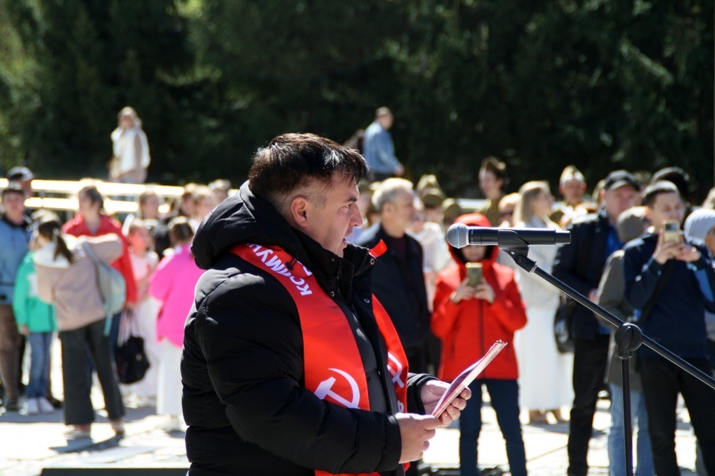 Мероприятия, посвященные Дню международной солидарности трудящихся, прошли сегодня на Монумент Славы в Новосибирске. В частности, в рамках патриотической марш-эстафеты КПРФ «Наша Великая Победа» 200-метровюу копию Знамени Победы развернули возле Вечного огня. 1 мая традиционная демонстрация КПРФ совпала со встречей марша-эстафеты «Наша Великая Победа». Более тысячи новосибирцев пришли на Монумент Славы, чтобы принять участие в митинге партии, отметив сразу День труда и 80-летие Победы в Великой Отечественной войне. Возле Монумента Славы развернули 200-метровое Знамя Победы, проехавшее через всю страну. Напомним, эстафета началась 17 марта в городе-герое Севастополе и теперь ее встретил Город трудовой доблести Новосибирск. «В этом году День международной солидарности трудящихся празднуется в совершенно особой обстановке, когда вся страна отмечает 80-летие Победы советского народа, Красной армии в Великой Отечественной войне, — такими словами открыл митинг секретарь областного комитета К